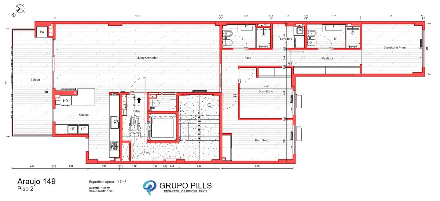ARAUJO 149 - Piso 2 - 10 Villa Luro Dentro de la mejor zona de Villa Luro, se levanta este exclusivo emprendimiento de 11 pisos residenciales con departamentos de 4 ambientes de categoría, cocheras en planta baja y un SUM con parrilla en el piso 12, pensado para disfrutar de la vida urbana con el máximo confort. Unidad Piso 2 - 10 Superficie total: 147 m² Cubierta: 130 m² Semicubierta (balcón): 17 m² Ambientes: 4 (3 dormitorios + living comedor + cocina) Baños: 3 (uno en suite + baño completo + toilette) Dependencias: Lavadero independiente y vestidor en dormitorio principal Balcón aterrazado con parrilla propia ️ Distribución Amplio living-comedor con salida al balcón terraza. Cocina semi-integrada con equipamiento premium, muebles a medida y espacio para comedor diario. Dormitorio principal en suite con vestidor y baño completo. Dos dormitorios adicionales con placard e interiores terminados. Baño completo + toilette de recepción. Lavadero independiente totalmente equipado. ️ Detalles de Categoría Climatización: Aire acondicionado multisplit inverter y calefacción por radiadores. Aberturas: PVC con doble vidrio. Puerta de ingreso blindada con cerradura biométrica. Persianas de aluminio eléctricas. Domótica instalada (control de luces, clima y seguridad). Pisos de madera o porcelanato. Cocina Mesada de Silestone o mármol. Anafe a gas de 4 hornallas. Horno y microondas elevados. Heladera y lavavajillas panelables. Grifería FV con filtro. Muebles a medida con sistema de cierre suave. Baños Inodoros y bidet Ferrum. Lavatorio en Silestone o mármol. Bañera y ducha con mampara. Griferías FV. Lavadero Espacio con lavarropas y secarropas incluidos. Edificio Cocheras en planta baja. SUM en piso 12 con parrilla y espacio de encuentro. Accesibilidad para personas con movilidad reducida. Entrega Inicio de obra: Noviembre 2024 Finalización estimada: Noviembre 2026 Precio Piso 2 - Frente USD 414.700 Financiación: Anticipo + 18 cuotas + saldo en posesión y escritura.